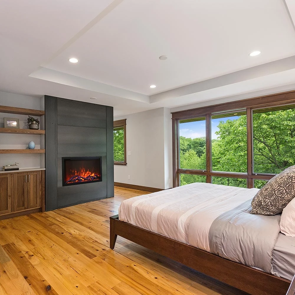 The Amantii 38-in Traditional Bespoke Smart Electric Insert “ticks” all the marks when it comes to features consumers have been asking for. Featuring impressive and vibrant flame effects, multiple media bed options, integrated speakers and crackling fire sound effects, plus Wifi Integration, the Bespoke Series has so much to get excited about.  With two flame patterns and multiple flame color choices, you can create a look and mood that fits your space with ease. Additional customization comes into play with the choices of ember bed media kits and trim kits available to “finish off” the final look of your fireplace. This advanced insert also features integrated speakers for quality audio that delivers a crackling fire sound, sampled from real fires, to enhance the overall realism of the fireplace. And its the integrated WiFi capabilities that really take this unit over the top. Using WiFi (& the Amantii App) you’ll be able to operate the fireplace from any room or even when you aren’t even home – Set the fireplace to turn on before arriving home, or have it turn on automatically when the weather is cold. With WiFi & the Amantii App, the customization possibilities are practically endless!