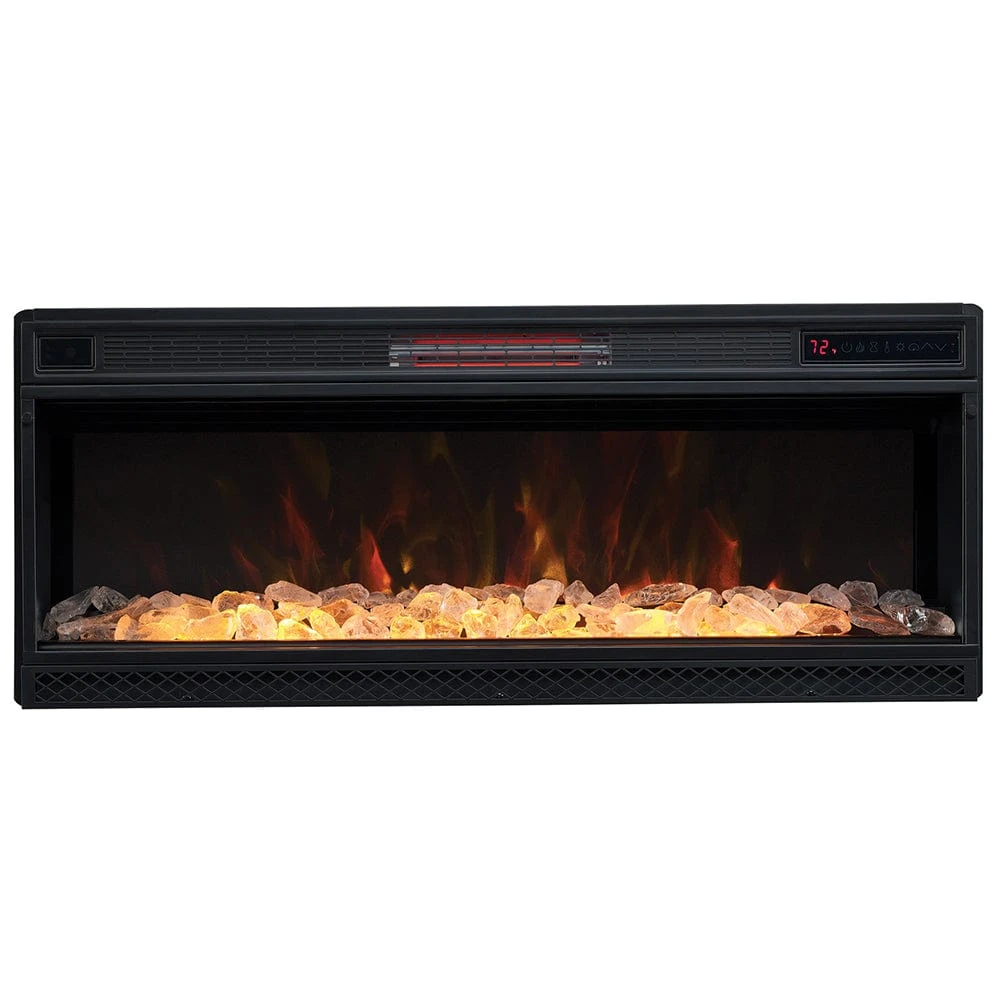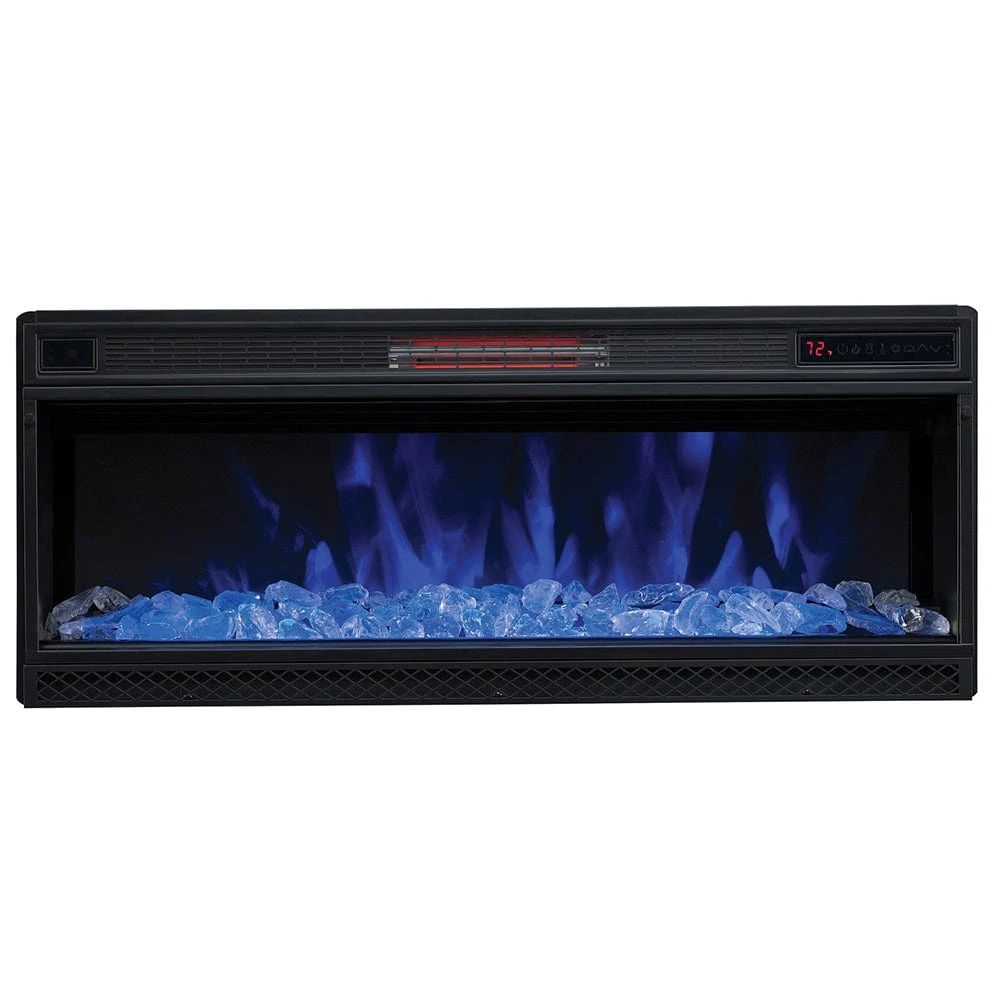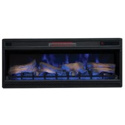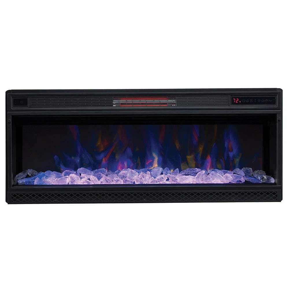 At the center of the Berkeley is a truly stunning 42″ linear electric fireplace. The firebox features 2 different ember bed options – large glass crystals and a resin cast log set (all included). The impressive LED lit 3D SpectraFire Plus flame effects create a beautiful illusion that will make you forget it is not a real fire. Choose from any combination of 5 flame colors, 5 flame speeds and 5 flame brightness levels to create a customized look. The firebox also features a supplemental infrared heater capable of producing heat for rooms up to 1,000 Sq. Ft. A multi-function remote control is also included and allows you to operate the temperature,flame/color and on/off timer. Create an inviting and trendy appeal to your home, apartment or loft with the addition of the Berkeley Infrared Electric Fireplace TV Stand.