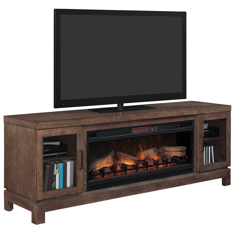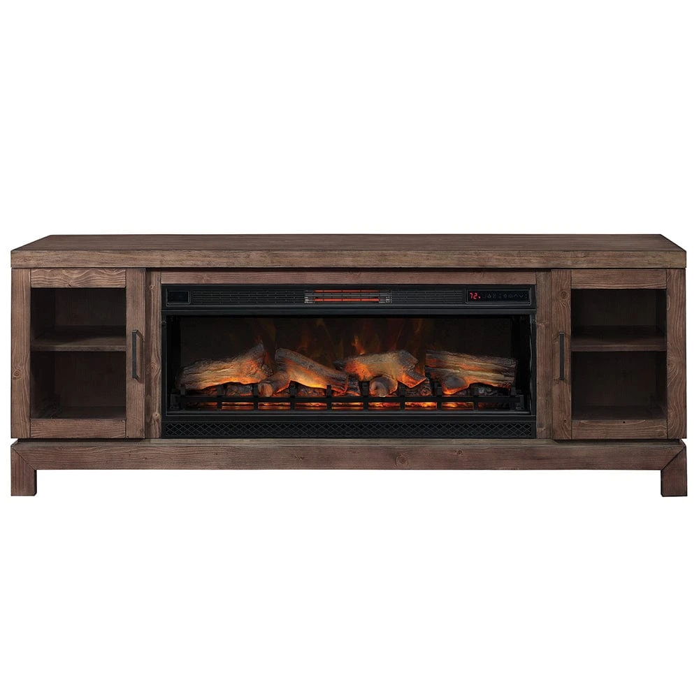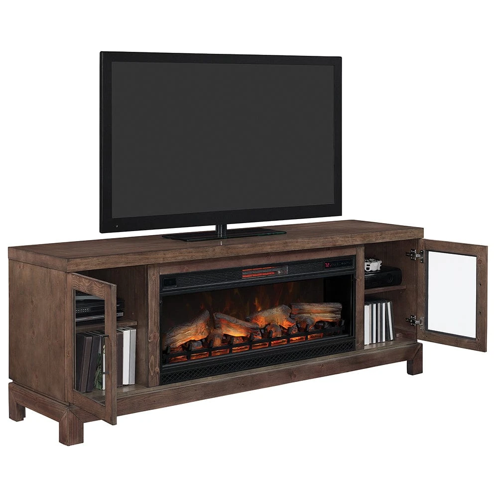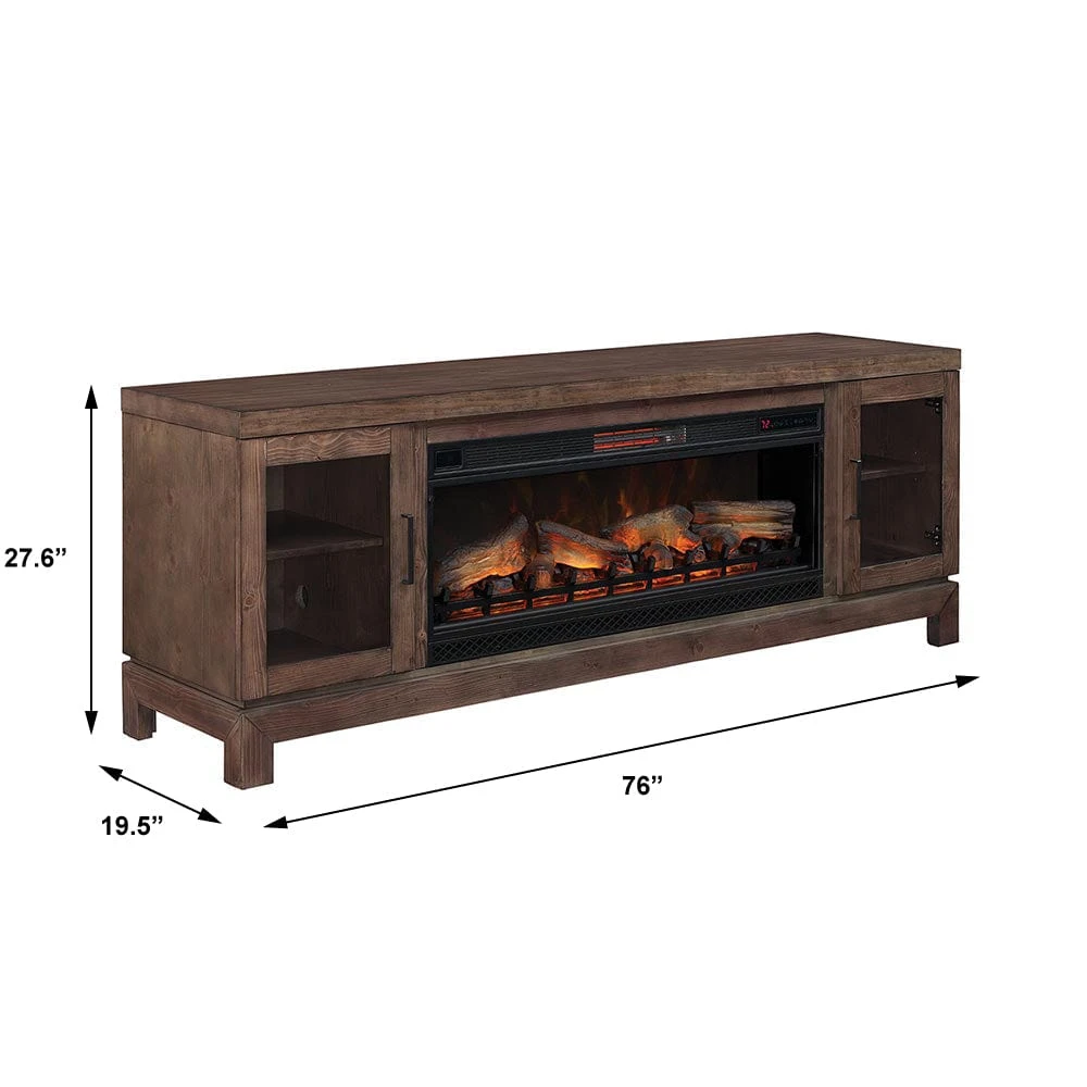 The Berkeley 76″ Infrared Electric Fireplace TV Stand in Spanish Gray is a stylish piece of quality furniture, designed to create the perfect setup for your TV and electronics. This extra wide media console can accommodate flat screen TV’s up to 80″ and 155 lbs. Two glass-fronted cabinets anchor both sides of the firebox with ample storage space for electronics and accessories. Integrated cable management channels ensure wires stay neat and tidy, for a clean, organized look. Give your room distinctive style with the addition of this beautiful entertainment cabinet.