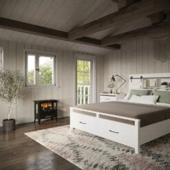Style, form and function come together in this beautiful infrared electric fireplace stove from Country Living. Featuring bright, LED lit flame projections and inner glowing hand-finished logs, this stove creates a realistic wood burning fire experience that you’ll love spending time by. The large arched etched-glass door and two side glass panels provide a great view of the flames from virtually any angle, while the customizable flame projections give you the ability to change the look of the fire with just a press of a summary.
