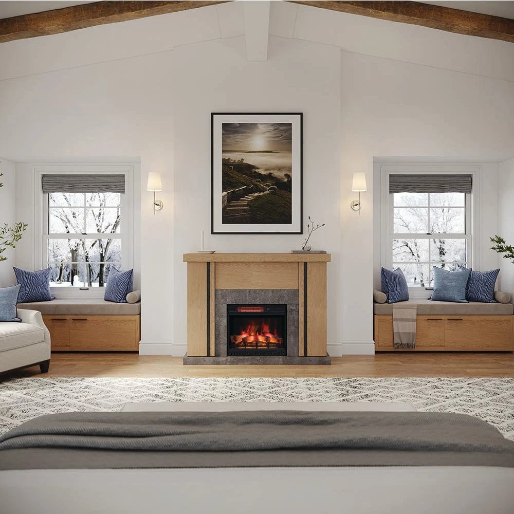 At the heart of this package is an 18-inch compact electric fireplace insert, offering an inviting flame display with two flame colors and three brightness settings. The infrared heater provides supplemental warmth for up to 1,000 sq. ft., making it an ideal addition to living rooms, bedrooms, or cozy gathering spaces. Enjoy year-round ambiance with the option to operate the flames with or without heat.