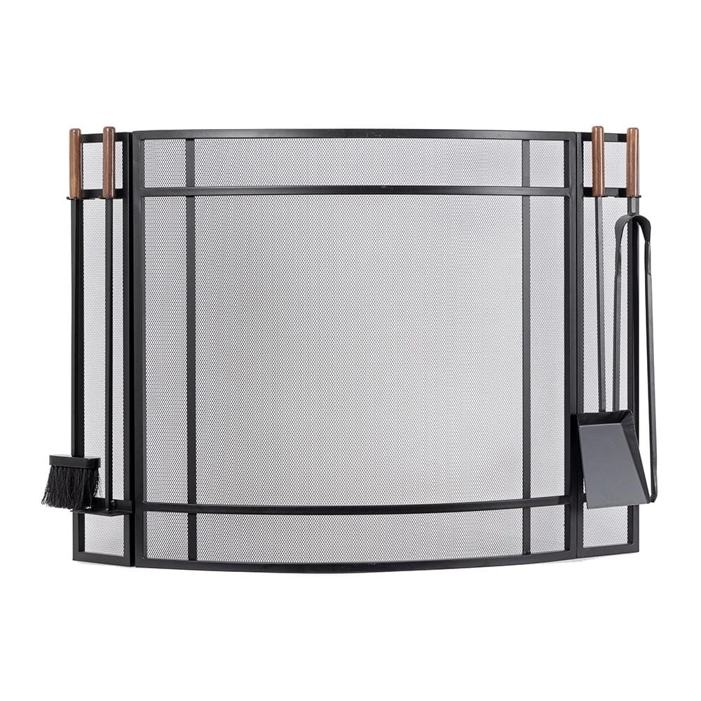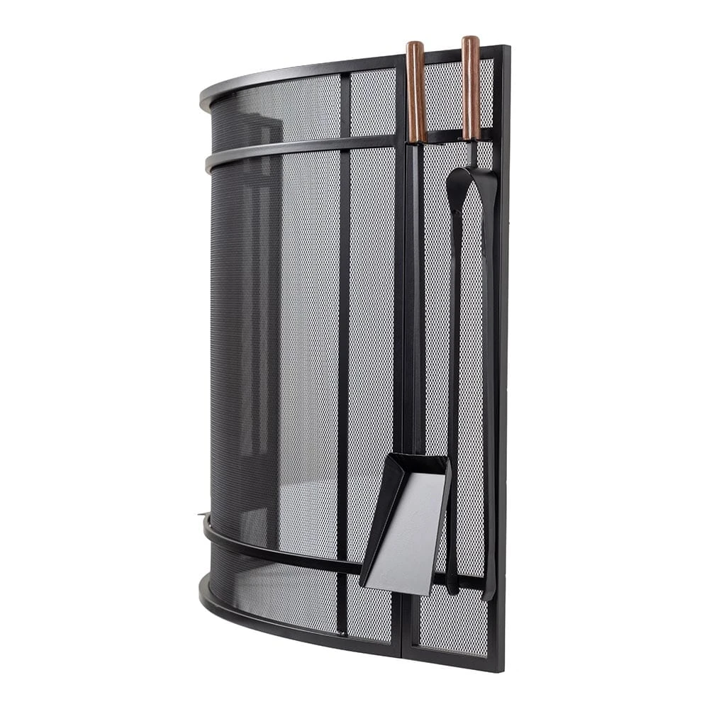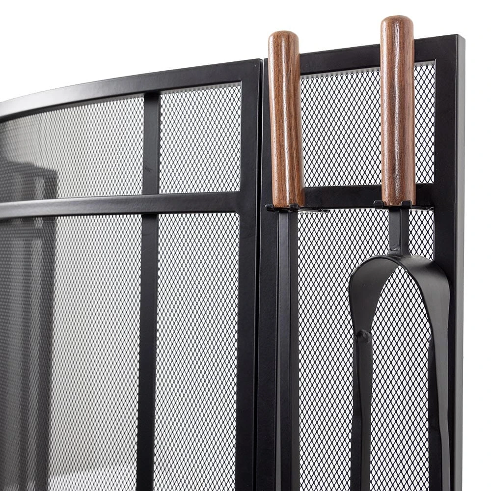 Elevate your fireplace with the Mariposa Fireplace Screen and Tool Set, which combines elegance and functionality. The trifold, arched design adds a touch of sophistication, while the extra-small mesh effectively contains sparks and ash, safeguarding your flooring. Not to mentioned the added peace of mind around children and pets. Four hanging tools with smooth grain maple handles, conveniently placed on either side, offer both practical use and refined style, enhancing both safety and aesthetics at your hearth.