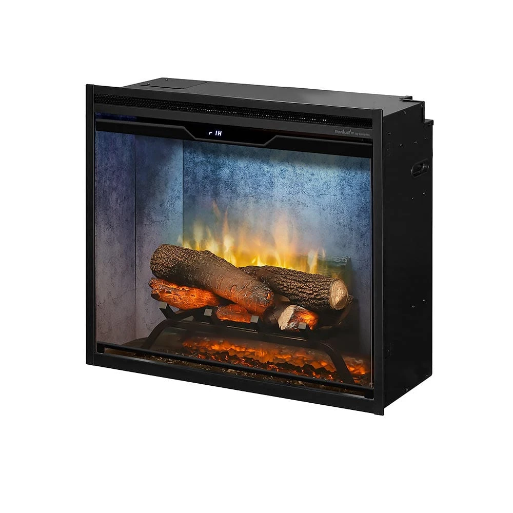 The Dimplex 24-In Revillusion Built-In Electric Fireplace is a truly impressive unit with its unprecedented life-like flame effects. Using the advanced and patented Revillusion Flame Technology, you yourself will find it hard to believe that this is not a true wood burning fire. The ThruView full-depth design creates the illusion of added depth within the firebox while the Mirage Flame Panel creates a see through view of the flames to the back of the firebox. For a more contemporary appeal, this firebox features a weathered grey interior that looks like concrete.Â