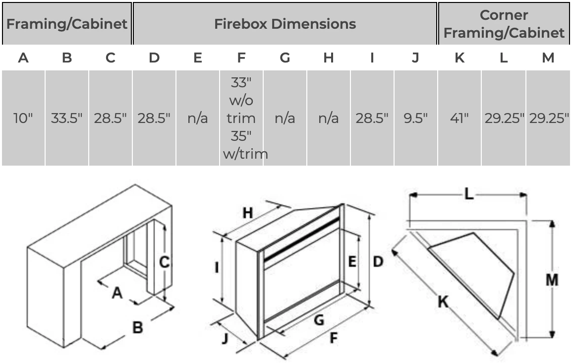 The Dimplex 33″ LED Built-In Electric Fireplace is easy to install with the choice to hardwire into either 120V or 240V electrical circuits. The flame technology is patented by Dimplex to provide a realistic looking fire with glowing logs, pulsating embers and a realistic LED flame effect. You will also be able to enjoy the warmth of the fireplace to provide enough heat to warm a room of between 400 and 800 square feet depending on the voltage. The Dimplex 33″ LED Built-In Electric Fireplace can be enjoyed any time of the year with the ability to turn the heat off and just enjoy the flame. The working mesh pull screen is included along with an On/Off remote controll. You can even utilize the included 3-piece trim kit if desired to get the most out of the look of your new fireplace. Install into any interior or exterior wall or corner. *Photo Gallery: Door options NOT shown with BFSL33 firebox. For representation of doors ONLY.