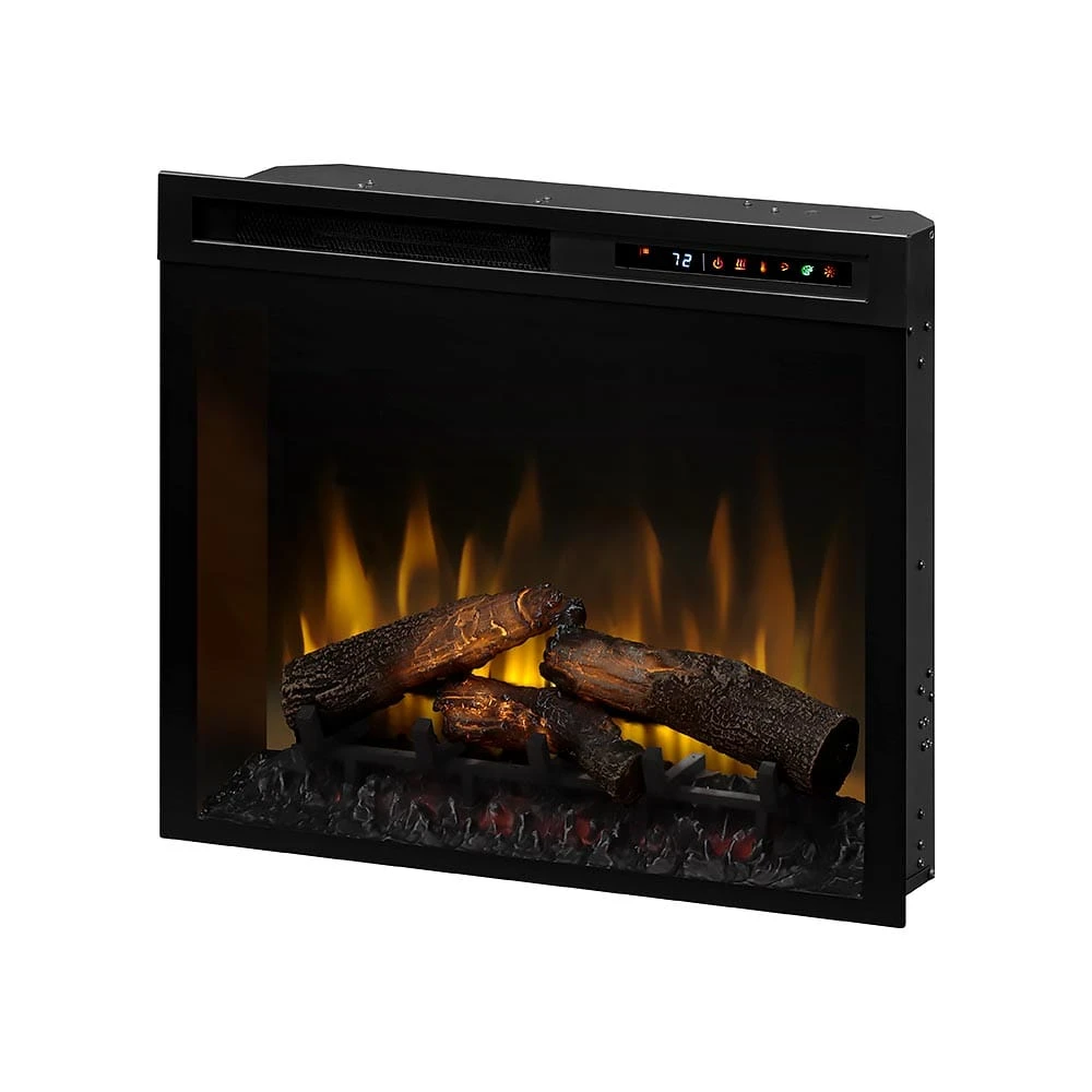 The Dimplex Nova 28-In Multi-Fire XHD Plug-In Electric Fireplace Insert creates a visual display that some would never guess was an artificial fire. The illusion is so life-like and authentic, you may even find yourself forgetting it isn’t a real flame. The intricate log set has been molded from actual burnt pieces of wood that are then hand painted for heightened realism. Additionally, each log is wired with glowing LED lighting that pulsate to simulate the look of a smoldering log. The bright and full LED lit flames rise high and wide for a truly stunning display, while controllable flame speed and brightness levels allow for a more customized overall experience. For added effects, just behind the log grate, you’ll find integrated LED lighting that allows you to set the ember area for a unique look.