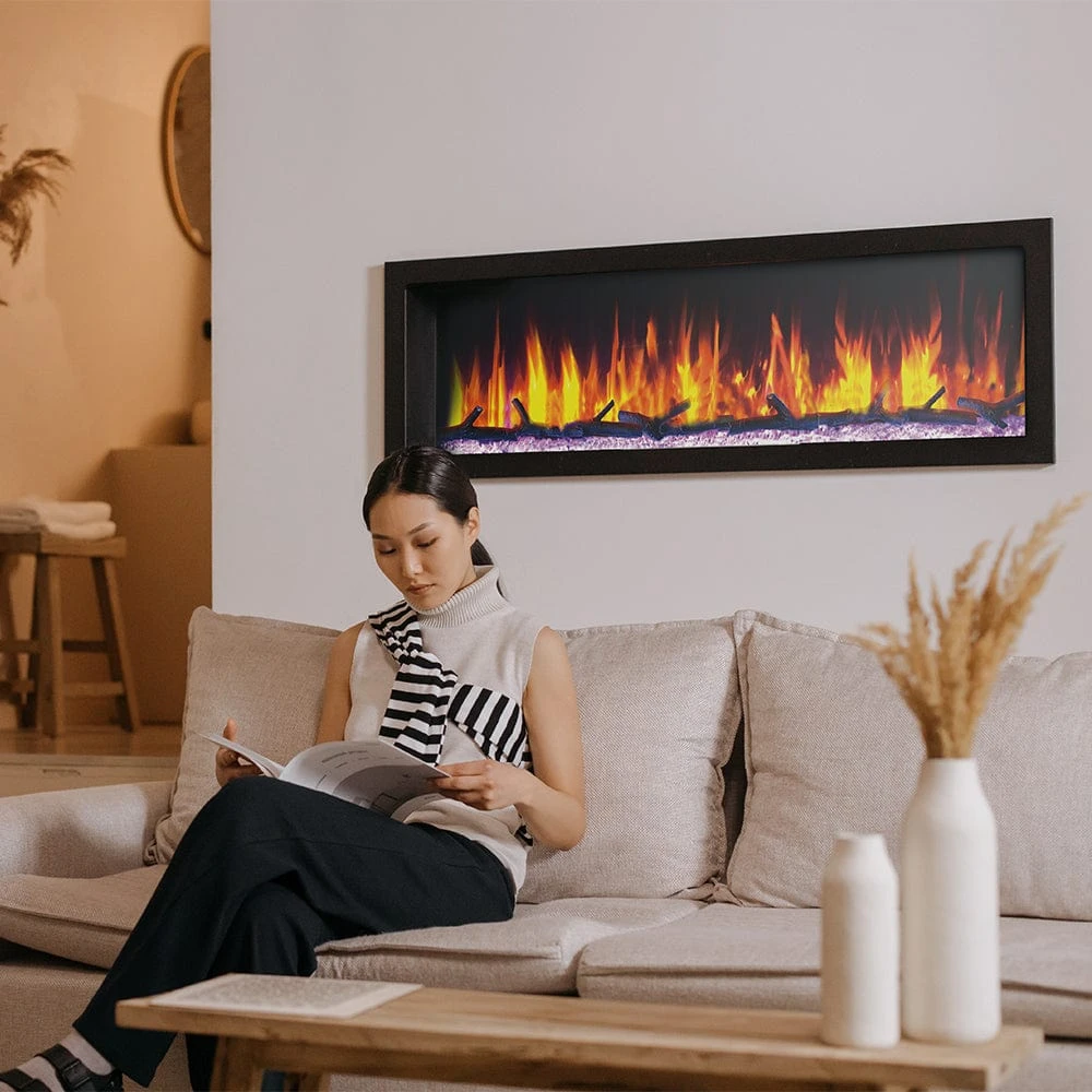 Enjoy true “Smart” technology integrations with the advanced Dynasty Cascade Linear Electric Fireplace. With Control4 smart home system compatible with Amazon Alexa & Google Home, you’ll be able to enjoy the greatest flexibility when it comes to operating the many features of this robust fireplace. Contemporary in its design, the Cascade is an easy-to-install, built-in electric fireplace that simply needs a standard 120V outlet to plug in to. Requiring no special ventilation, you’ll be able to add the soothing ambiance and comforting warmth of a fireplace in virtually any room in your home. Enjoy the flickering flames as they shimmer and dance from the log & crystal ember bed. For added customization, easily adjust the various color combinations for both the flames as well as the ember bed.