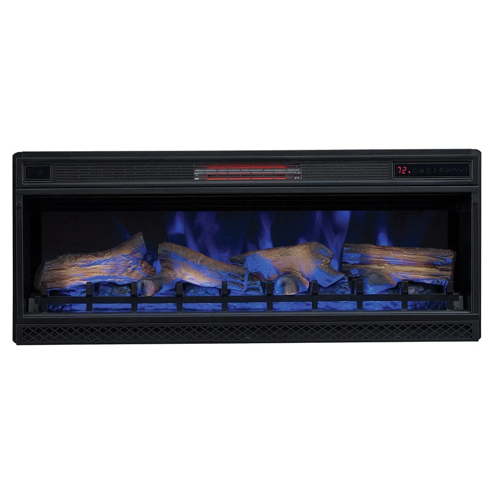 Once you’ve taken in all the features already mentioned, take a look at the impressive and expansive 42″ linear electric fireplace insert. Touting an impressive and enhanced 3-Dimensional SpectraFire Plus flame effect, the firebox creates multi-colored “fire” resulting in a life-like artificial fire experience with flames that rise from in front, between and behind the log set. Customize the look of your fireplace by selecting from 5 flame colors, 5 flame speeds and 5 brightness levels. Capable of heating areas up to 1,000 Sq. Ft., the integrated infrared heater helps to ensure you are always warm, toasty and comfortable while you indulge in your favorite programs. Though large in size, the Heathrow assembles with ease and requires just the use of a Phillips head screwdriver.