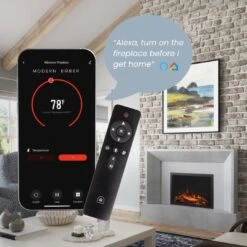 Customize your ambiance with 10 flame colors, 4 flame speeds, and 5 brightness settings – plus 10 ember bed and downlight color options for an immersive experience. The WiFi-enabled smart controls allow you to adjust settings via the Tuya app, remote control, or digital touch panel, while voice commands through Alexa and Google Home offer hands-free convenience.