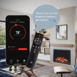 Customize your ambiance with 10 flame colors, 4 flame speeds, and 5 brightness settings – plus 10 ember bed and downlight color options for an immersive experience. The WiFi-enabled smart controls allow you to adjust settings via the Tuya app, remote control, or digital touch panel, while voice commands through Alexa and Google Home offer hands-free convenience.