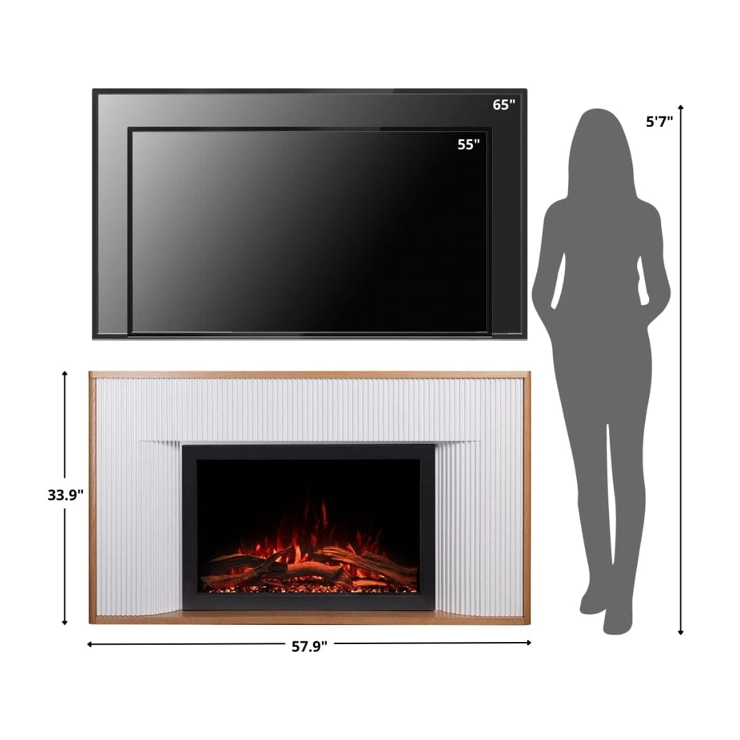 The Modern Ember Arrie Electric Fireplace Mantel Package brings contemporary elegance and warmth to your home. Designed with exquisite fluting details, rounded corners, and a graceful curved leg design, this mid-century-inspired mantel adds a sophisticated touch to any living space. Its slim profile makes it a seamless fit for modern interiors without compromising on style.