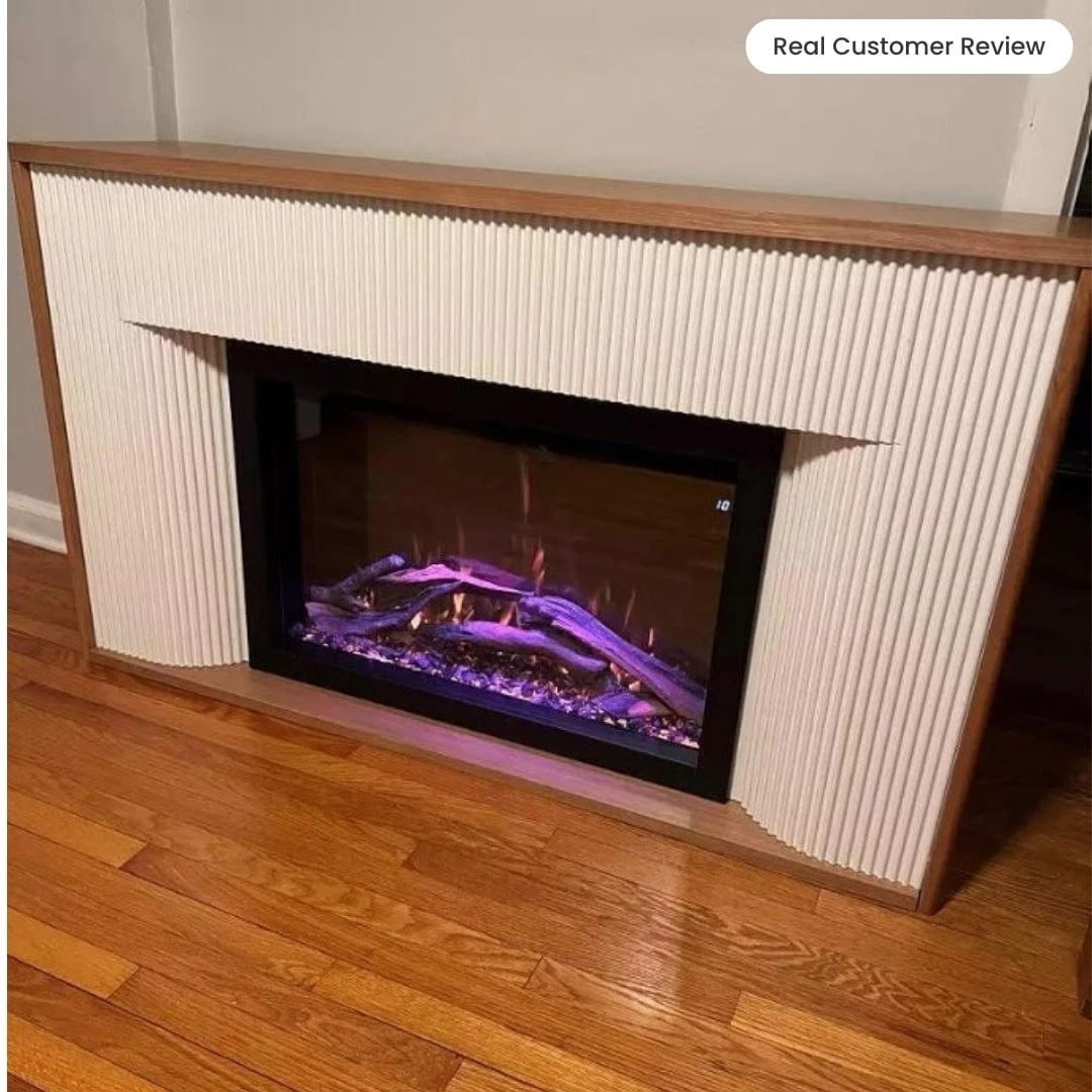 At the heart of this package is a 33-inch electric fireplace insert, offering a fully customizable flame experience. Choose from 10 flame colors, 4 flame speeds, and multiple brightness levels, along with adjustable ember bed colors to match your mood. The included realistic driftwood logs and glacier crystals add a refined touch to the flickering LED flames.