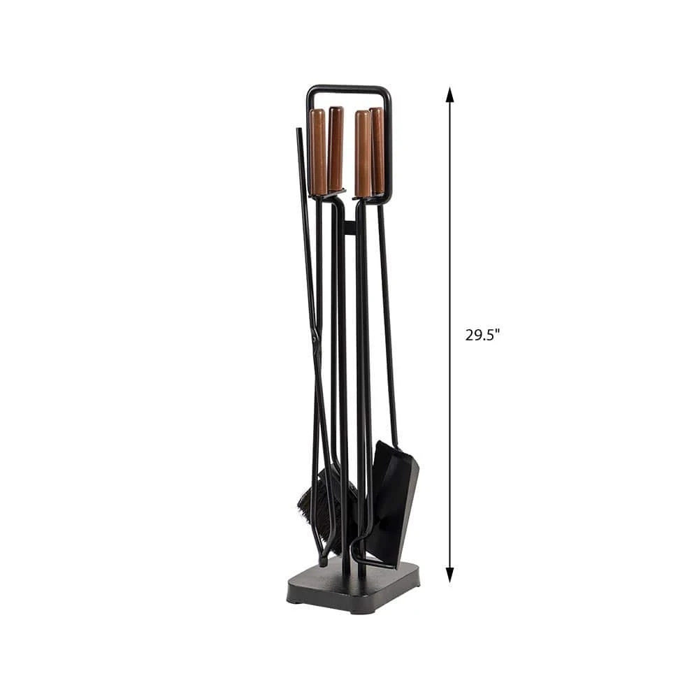 Our Modern Ember Levi 5-Piece Fireplace Tool Set is crafted with heavy-duty steel and fortified by a corrosion and heat resistant powder coating process that guarantees the safe maintenance of your fire. This toolset includes all the fireplace essential tools – brush, shovel, poker, tongs all organized on a sturdy stand. The smooth grain maple wood handles are beautifully crafted offering both refinement and a secure grip. With its sleek profile tailored for modern and traditional spaces, the black finish will be an eye-catching feature next to your fireplace hearth.
