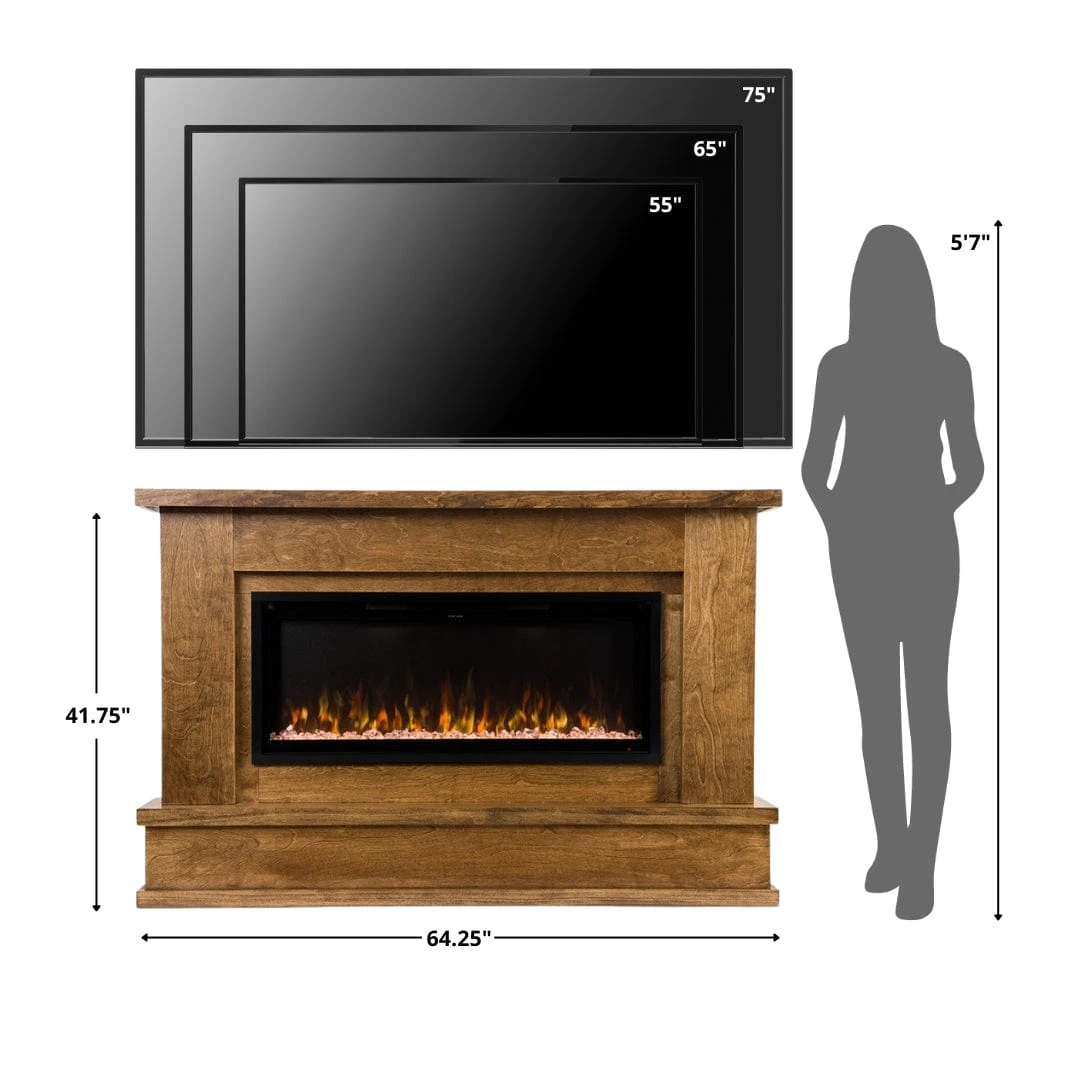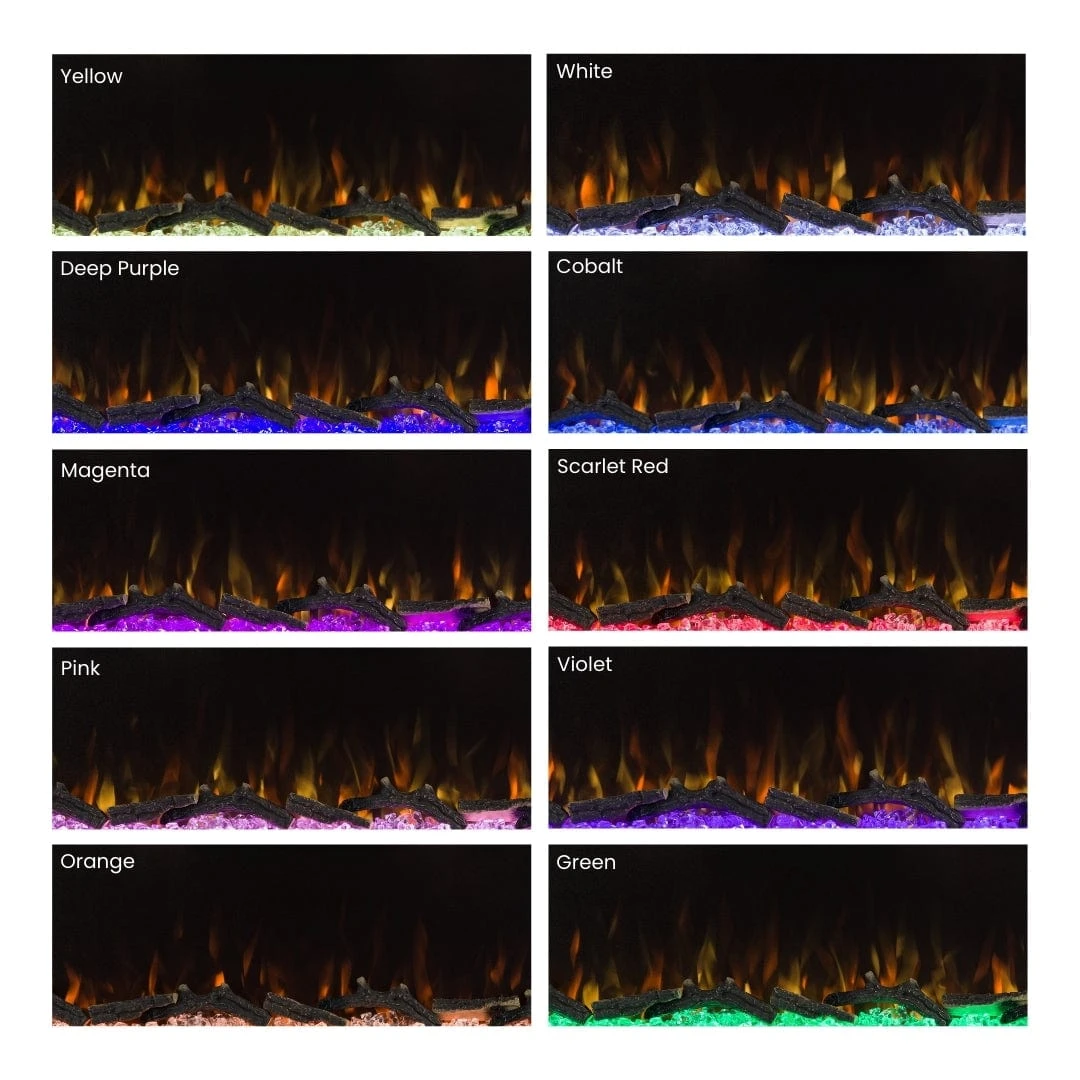 At the center of this unit is an impressive 42-inch electric fireplace insert, delivering a wide, panoramic view of vibrant LED flames. Customize the ambiance with five flame colors, three flame speeds, multiple brightness settings, and ten ember bed colors to match any mood or décor. The included driftwood log set and crystal embers enhance the realistic flame effect.