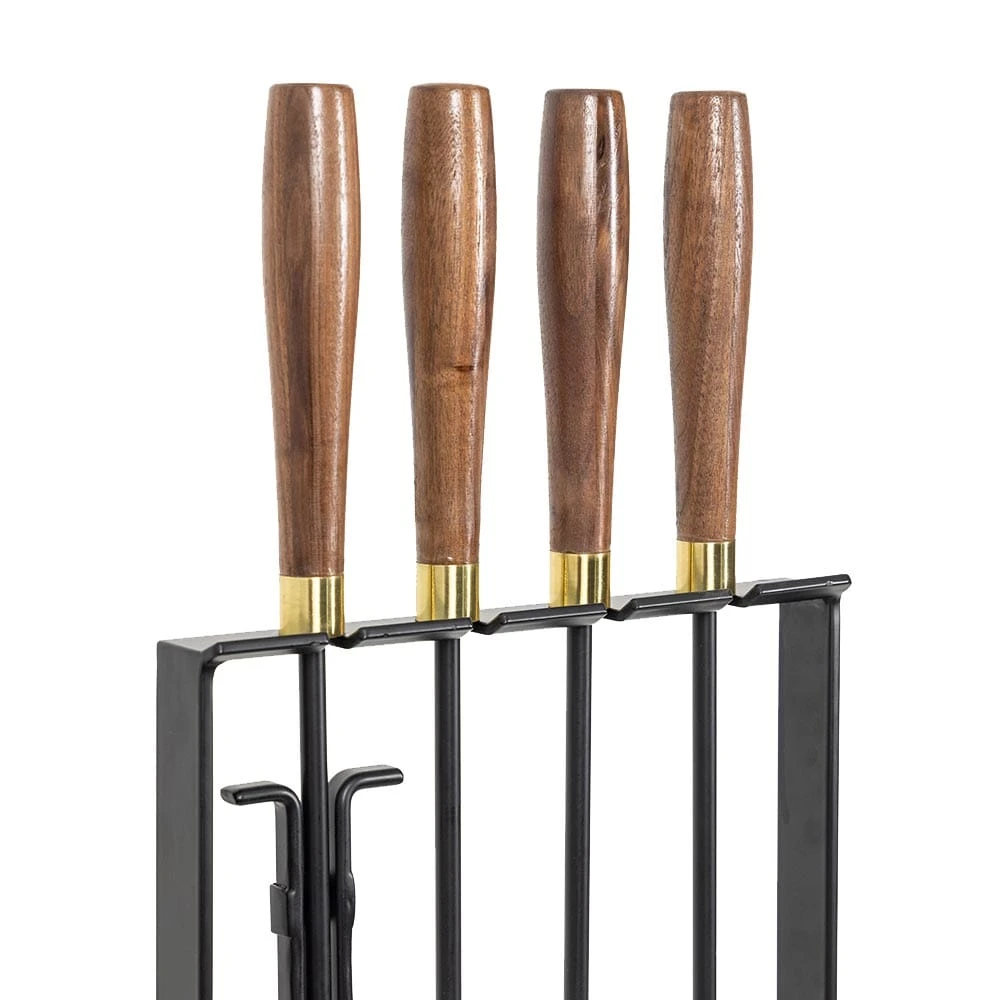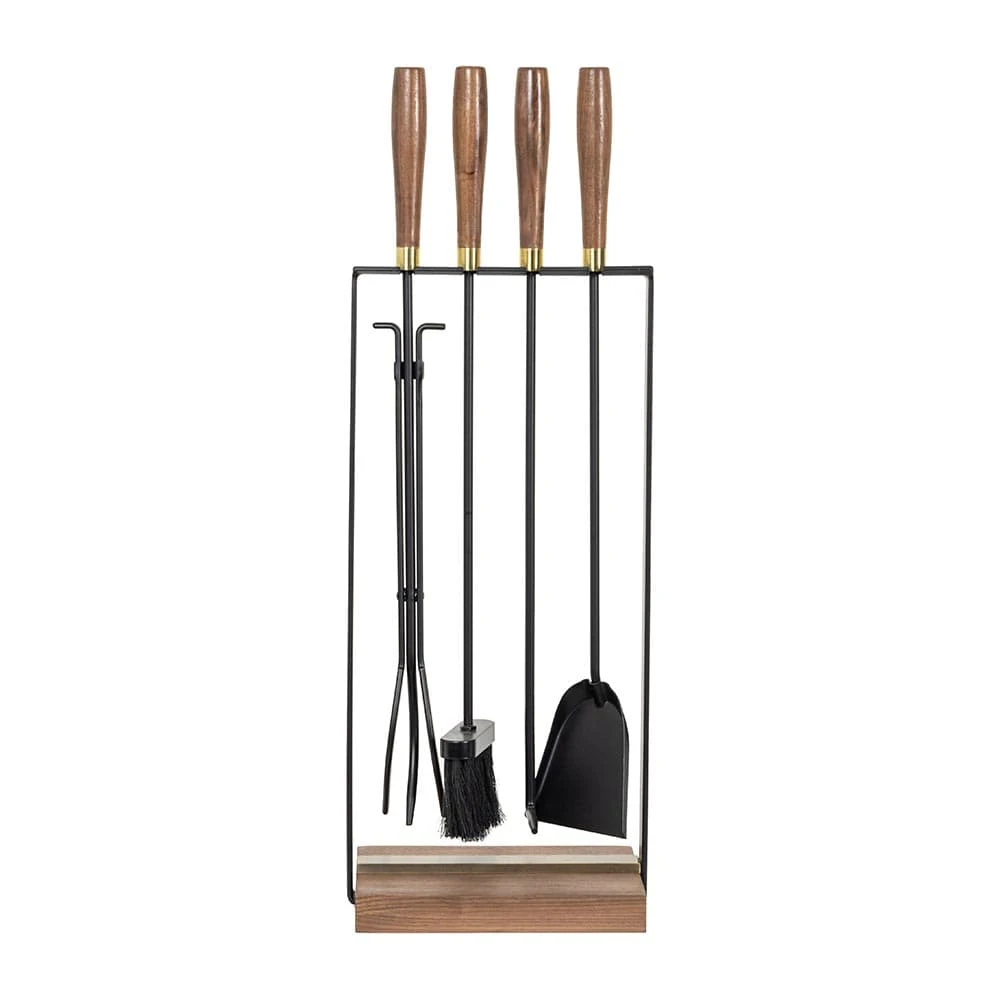 The Walnut Grove Fireplace Tool set is a stunning combination of design, craftsmanship and functionality. The intentional use of real walnut wood, powder coated black steel and brass accents, gives the Walnut Creek tool set a sense of heightened fashion for your fireplace. The 4 tools (shovel, poker, brush and tongs) offer the perfect array of options to safely tend to your wood burning fire. Whether for functional or decorative use, the modern styling of this tool set is sure to give new focus to your hearth.