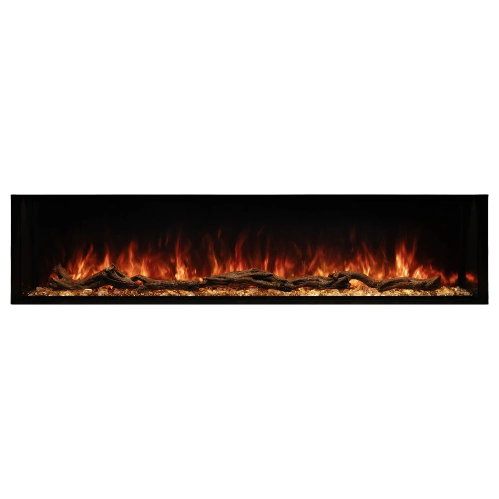 The Modern Flames 68-in Landscape Pro MultiView Built-In Electric Fireplace offers the most versatile installation options of any linear fireplace. Case in point, this unit can be built into a wall as a single sided, left corner, right corner or 3 sided bay. This unique design allows for the type of versatility that will allow you to dream big with your electric fireplace. At 68″ in size, the unit’s edge-to-edge viewing area provides an impressive unobstructed view of the high intensity LED lit flame effects. Additional lighting features include a glowing ember bed and down-lighting. All lighting options offer the full color spectrum to choose from, so you’ll be able to create a truly personalized viewing experience. The fireplace comes with 3 ember bed options, clear acrylic stone, black smoke acrylic crystals and a driftwood log set.