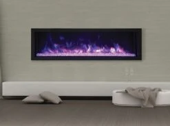 The Napoleon 50-In Alluravision Slim Wall Mount Electric Fireplace really brings focus to the stunning flame effects and contemporary crystal ember bed with its practically frameless, edge-to-edge design. Create a charming space to relax or entertain in with this beautiful and technologically advanced unit. Vibrant LED flame effects cast an appealing aura into your room with your choice of 3 flame color options. With life-like motion, the light projections replicate the look of real flames with a precision not typically seen from electric fireplaces. You’ll be able to manipulate the flame speed and flame brightness in addition to color. To add yet another level of visual interest and intrigue, separate LED lighting has been integrated into the ember bed of the unit and allows you to choose from 6 color options (white, blue, green, red, yellow & purple). Offering 2 installation choices, the unit can be either fully recessed into a wall and direct-wired for a flush appearance or wall mounted and plugged-in using the included bracket.