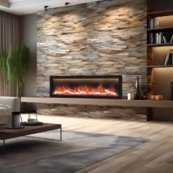 Give your room that decorative feature that commands attention and draws your guests in. The SimpliFire 78-in Scion Linear Built-In Electric Fireplace is an impressive and modern unit, designed to be hard-wired and installed directly into your wall. Whether you’re doing the work yourself or a contractor, your finishing material can come right to the edge of the unit for that true, “finished” built-in look. A unique feature of the Scion series is that they have an open front and no visible heat vents for a truly clean overall appearance. For those looking to make a statement wall, the fireplace is safe for use under a flat screen TV or your favorite piece of art, with no worry to causing any harm. The Scion utilizes bright and vibrant LED lighting to create realistic flame effects that appear to rise from your choice of driftwood logs or crystals (both included). For added customization and a pop of unexpected visual appeal, you’ll enjoy the 4 flame color options (Blue, Blue/Orange, Orange, Orange/Blue) as well as the 14 ember bed lighting combinations. Create the ambiance that fits your mood or occasion.