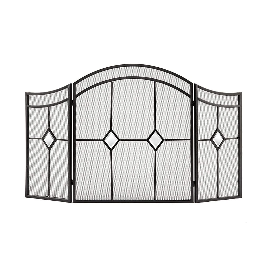 Give your fireplace an elegant upgrade with the addition of the beautiful Three Panel Diamond Fireplace Screen. You’ll love this 3 piece screen with its durable steel construction, mesh screen and beveled glass diamond accents. Not just adding a stylish focal-point for your fireplace, the screen will also help to ensure no stray sparks or ash drift out of your fireplace. This product includes a 1-Year Limited Warranty.