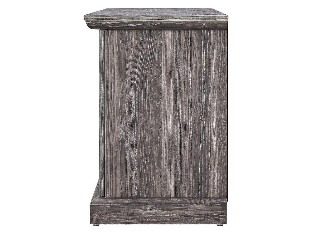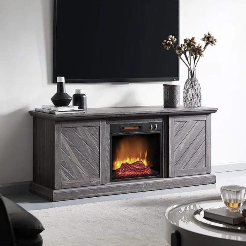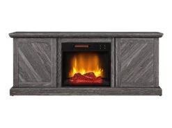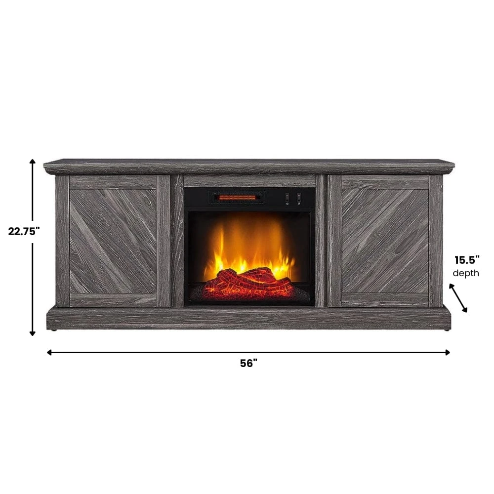 The Walden Electric Fireplace Media Console offers a unique take on rustic wood craftsmanship. This inspired design features symmetrical plank style doors and a unique weathered gray finish. Capable of accommodating flat screen TVs up to 47″ in size, you’ll be able to easily create the ideal setup for watching your favorite programs or movies. At its center sits a beautiful 18″ firebox with easy-to-operate manual controls. This elegant firebox features LED lit flame projections that appear to rise from glowing logs and embers.